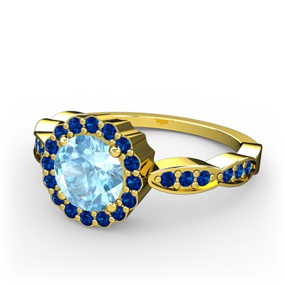 Akuamarin ve lab safir 14 ayar altın yüzük
