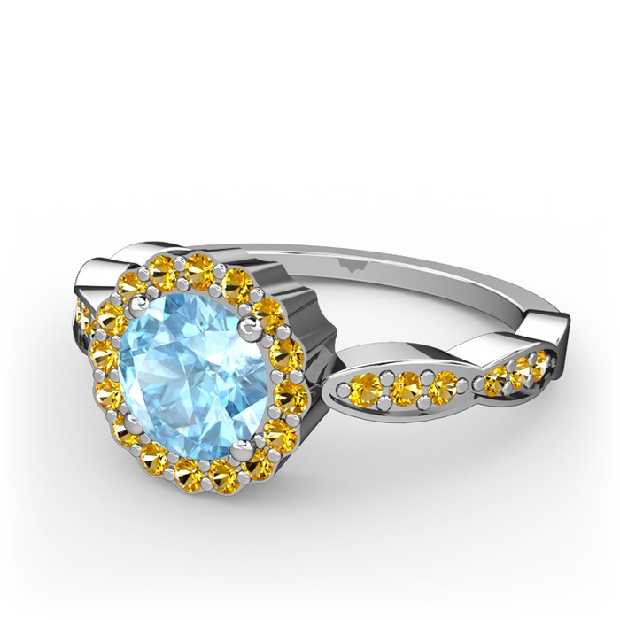 Akuamarin ve sitrin 14 ayar beyaz altın yüzük
