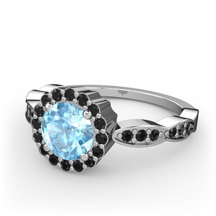 Akuamarin ve siyah zirkon 8 ayar beyaz altın yüzük