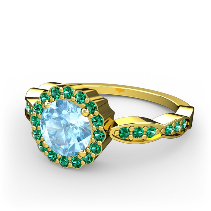 Akuamarin ve yeşil kuvars 925 ayar altın kaplama gümüş yüzük