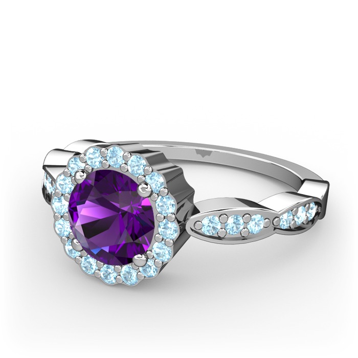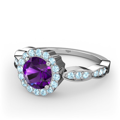 Ametist ve akuamarin 8 ayar beyaz altın yüzük