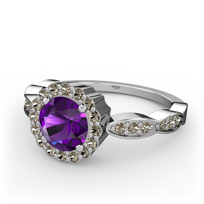 Ametist ve dumanlı kuvars 8 ayar beyaz altın yüzük