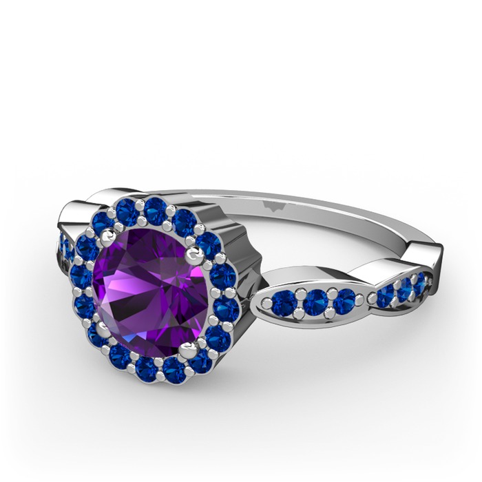 Ametist ve lab safir 18 ayar beyaz altın yüzük