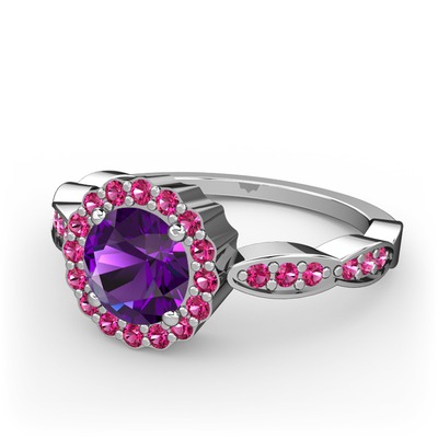 Ametist ve rodolit garnet 14 ayar beyaz altın yüzük