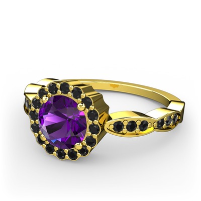 Ametist ve siyah zirkon 14 ayar altın yüzük