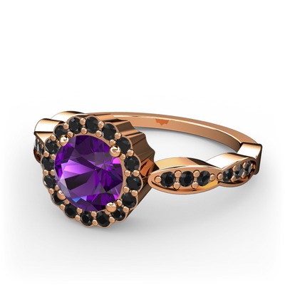 Ametist ve siyah zirkon 8 ayar rose altın yüzük