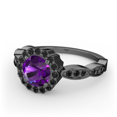 Ametist ve siyah zirkon 925 ayar siyah rodyum kaplama gümüş yüzük