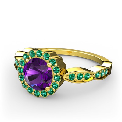 Ametist ve yeşil kuvars 925 ayar altın kaplama gümüş yüzük
