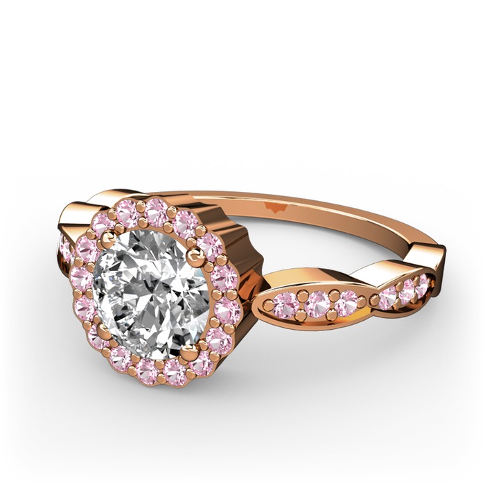 Beyaz zirkon ve pembe kuvars 18 ayar rose altın yüzük