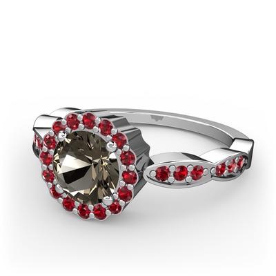 Dumanlı kuvars ve garnet 18 ayar beyaz altın yüzük