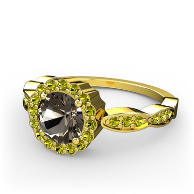Dumanlı kuvars ve peridot 14 ayar altın yüzük