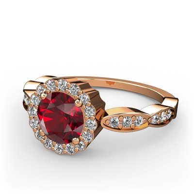 Garnet ve beyaz zirkon 14 ayar rose altın yüzük