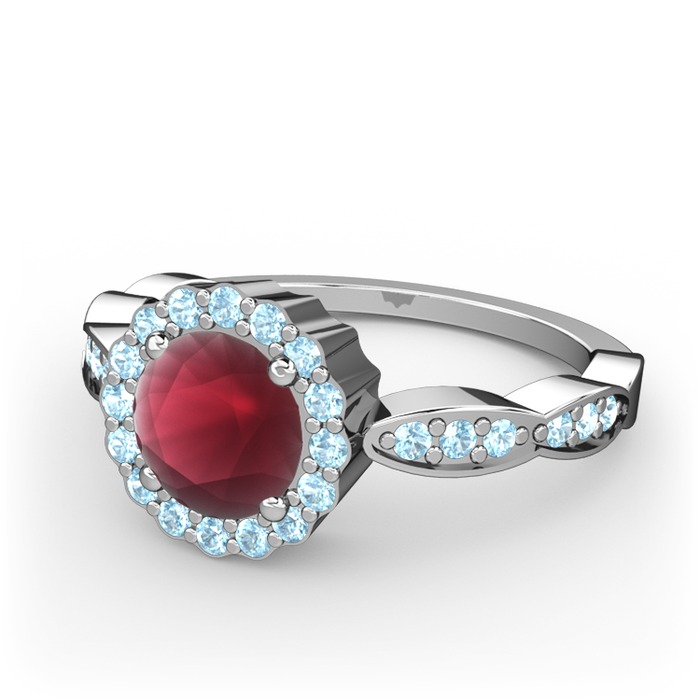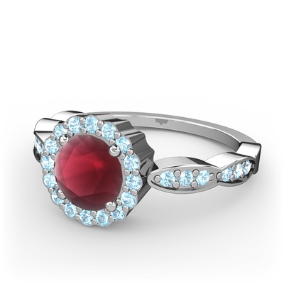 Kök yakut ve akuamarin 18 ayar beyaz altın yüzük