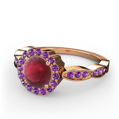 Kök yakut ve ametist 8 ayar rose altın yüzük