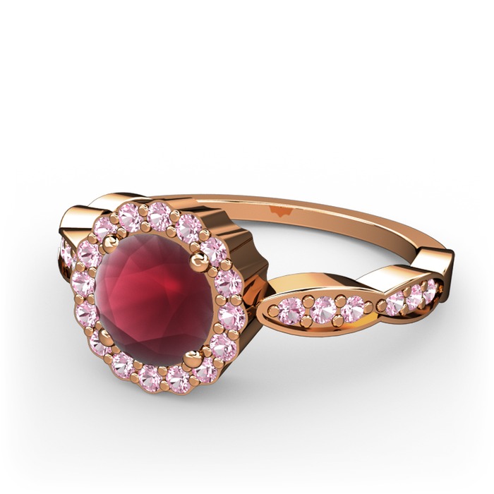Kök yakut ve pembe kuvars 8 ayar rose altın yüzük