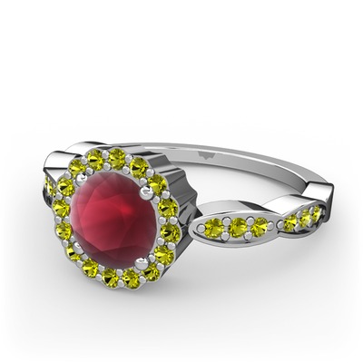Kök yakut ve peridot 8 ayar beyaz altın yüzük