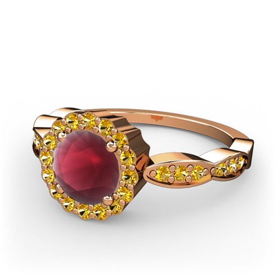 Kök yakut ve sitrin 8 ayar rose altın yüzük