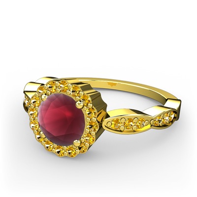 Kök yakut ve sitrin 925 ayar altın kaplama gümüş yüzük