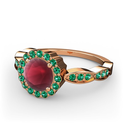 Kök yakut ve yeşil kuvars 925 ayar rose altın kaplama gümüş yüzük