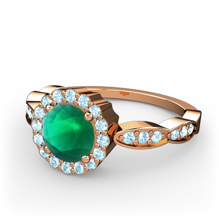 Kök zümrüt ve akuamarin 8 ayar rose altın yüzük