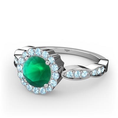 Kök zümrüt ve akuamarin 925 ayar gümüş yüzük