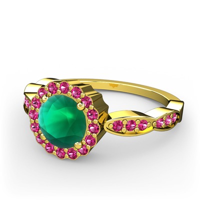 Kök zümrüt ve rodolit garnet 14 ayar altın yüzük