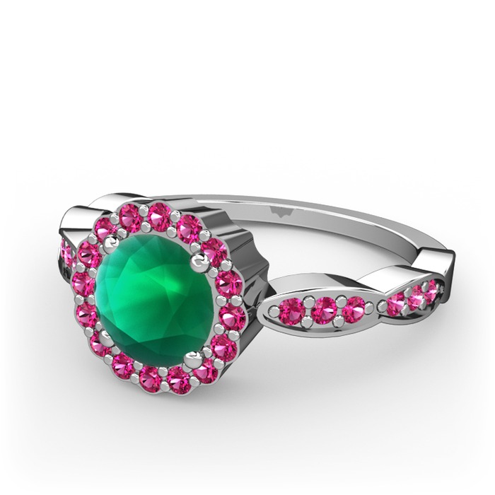 Kök zümrüt ve rodolit garnet 18 ayar beyaz altın yüzük