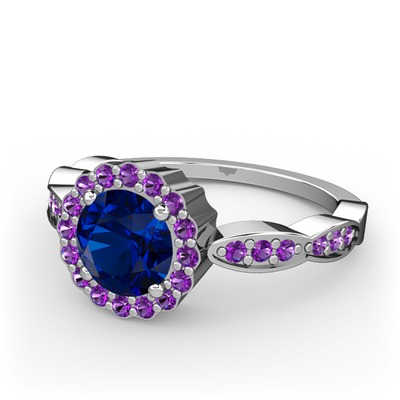 Lab safir ve ametist 14 ayar beyaz altın yüzük