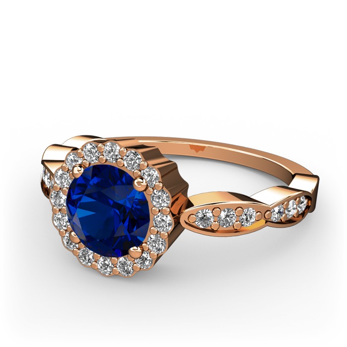 Lab safir ve beyaz zirkon 14 ayar rose altın yüzük