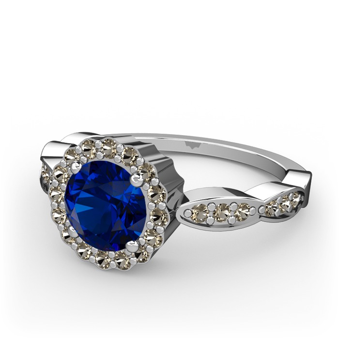 Lab safir ve dumanlı kuvars 14 ayar beyaz altın yüzük