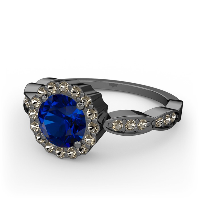 Lab safir ve dumanlı kuvars 925 ayar siyah rodyum kaplama gümüş yüzük