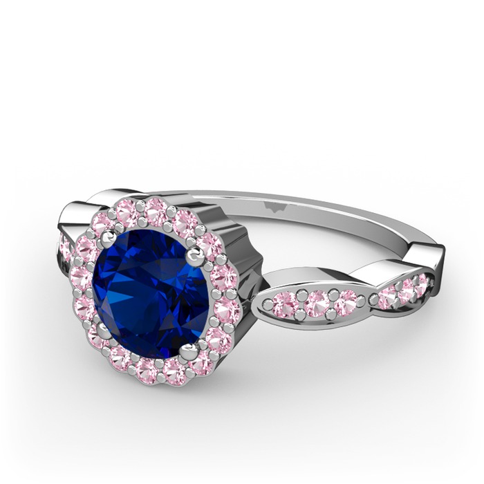 Lab safir ve pembe kuvars 8 ayar beyaz altın yüzük