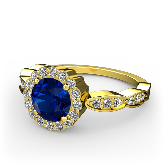 Lab safir ve pırlanta 14 ayar altın yüzük (0.308 karat)