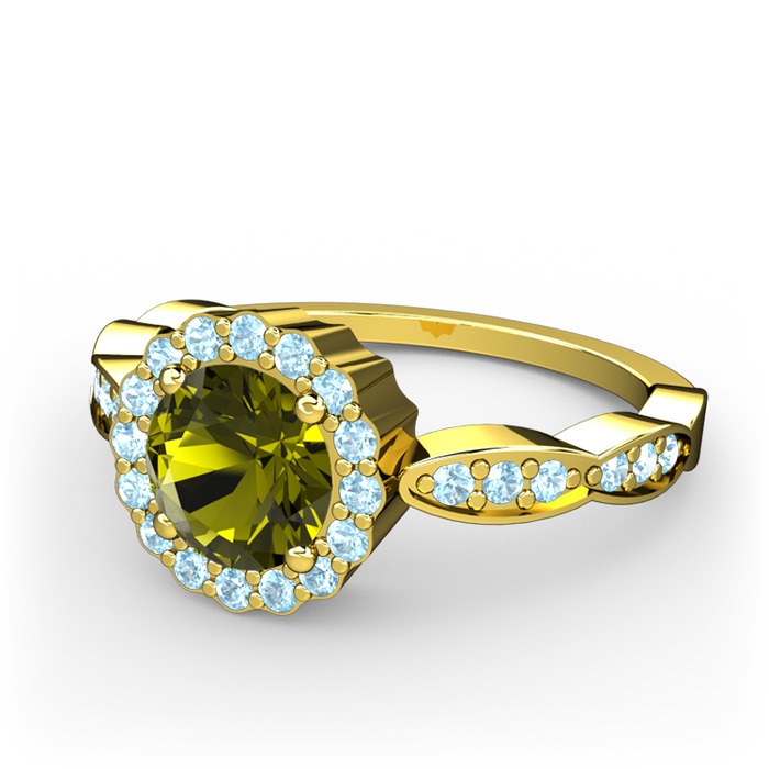 Peridot ve akuamarin 14 ayar altın yüzük