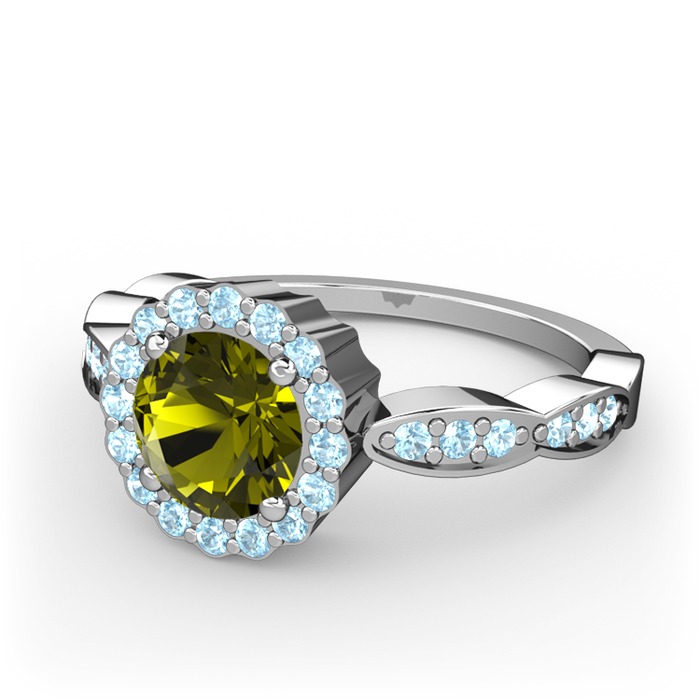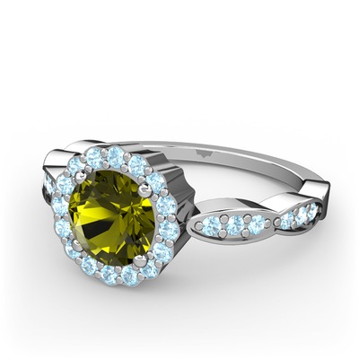 Peridot ve akuamarin 18 ayar beyaz altın yüzük