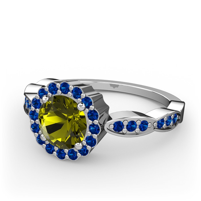 Peridot ve lab safir 18 ayar beyaz altın yüzük