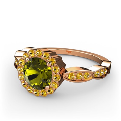 Peridot ve sitrin 14 ayar rose altın yüzük
