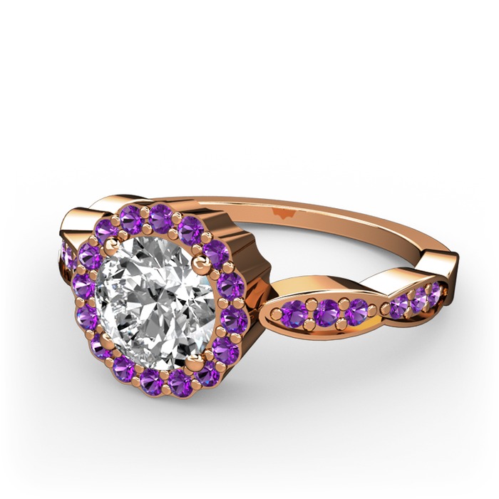 Pırlanta ve ametist 18 ayar rose altın yüzük (0.92 karat)