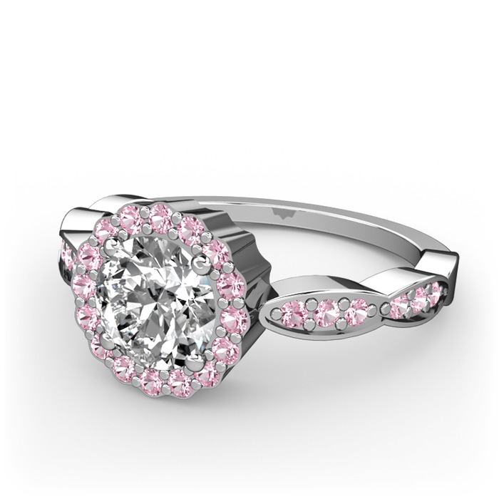 Pırlanta ve pembe kuvars 18 ayar beyaz altın yüzük (0.92 karat)