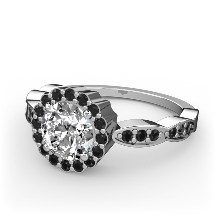 Pırlanta ve siyah zirkon 14 ayar beyaz altın yüzük (0.92 karat)