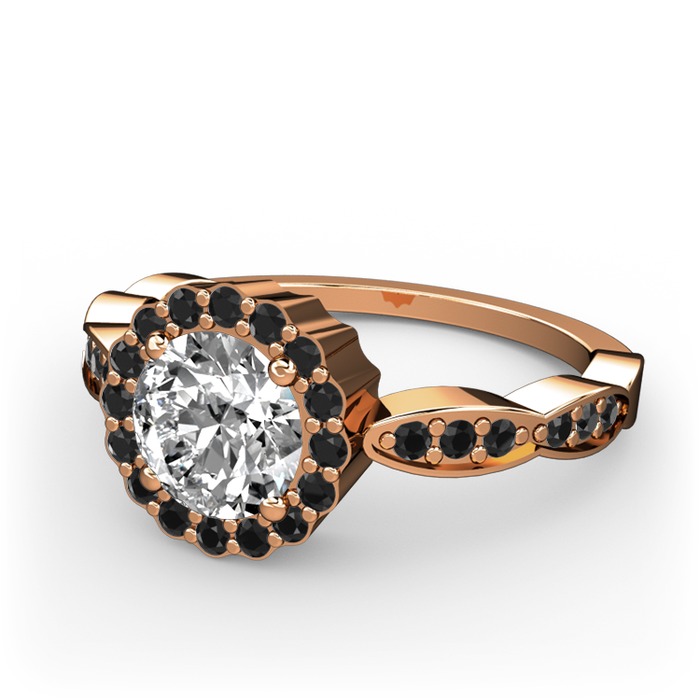 Pırlanta ve siyah zirkon 8 ayar rose altın yüzük (0.92 karat)