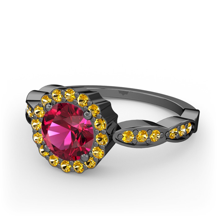 Rodolit garnet ve sitrin 925 ayar siyah rodyum kaplama gümüş yüzük