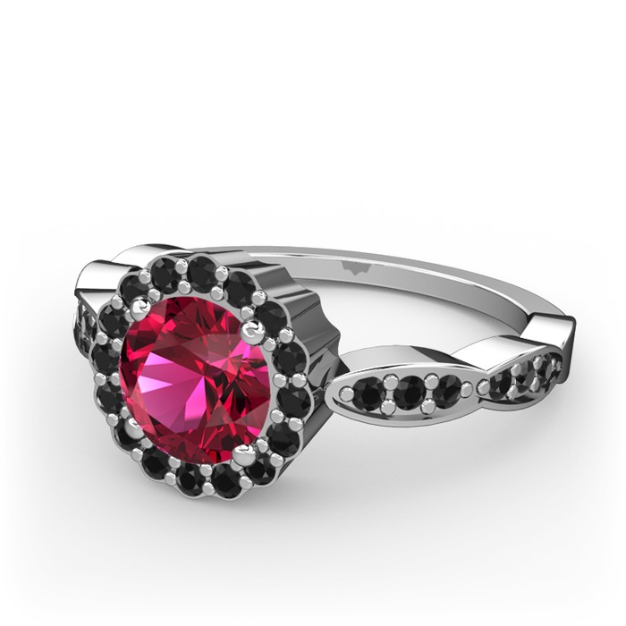 Rodolit garnet ve siyah zirkon 14 ayar beyaz altın yüzük