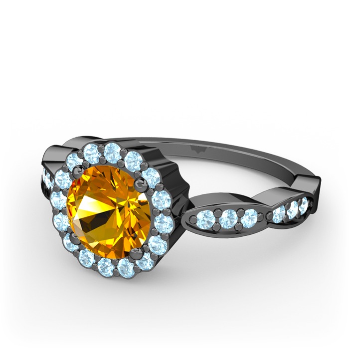 Sitrin ve akuamarin 925 ayar siyah rodyum kaplama gümüş yüzük