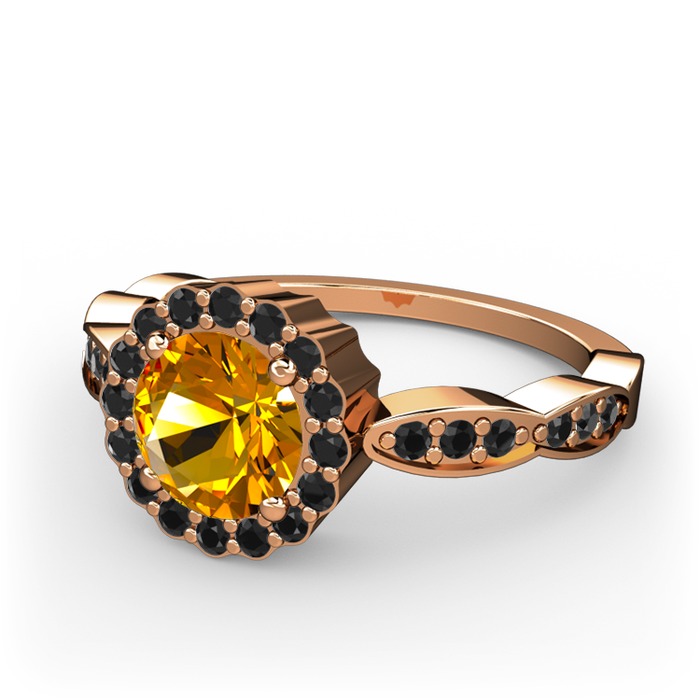 Sitrin ve siyah zirkon 8 ayar rose altın yüzük
