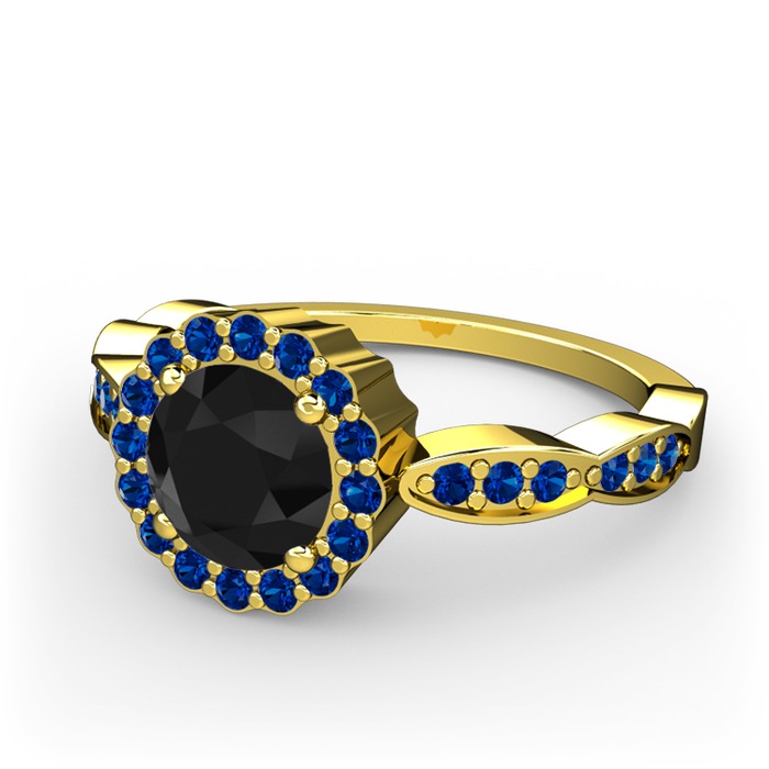 Siyah zirkon ve lab safir 925 ayar altın kaplama gümüş yüzük