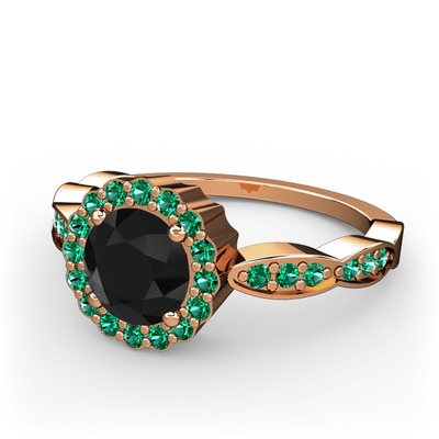 Siyah zirkon ve yeşil kuvars 8 ayar rose altın yüzük