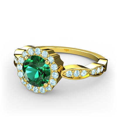 Yeşil kuvars ve akuamarin 14 ayar altın yüzük