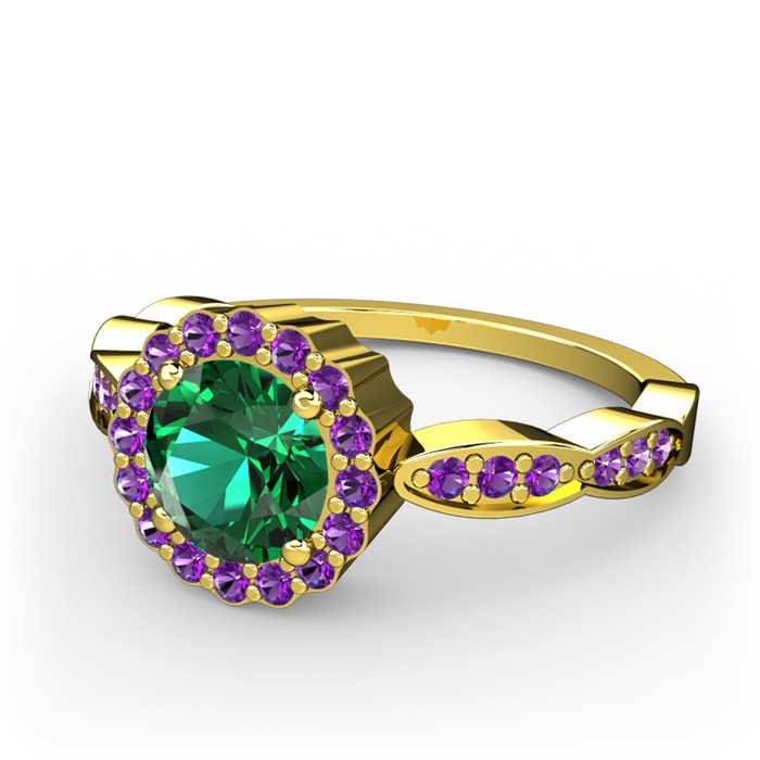 Yeşil kuvars ve ametist 925 ayar altın kaplama gümüş yüzük
