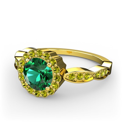 Yeşil kuvars ve peridot 14 ayar altın yüzük